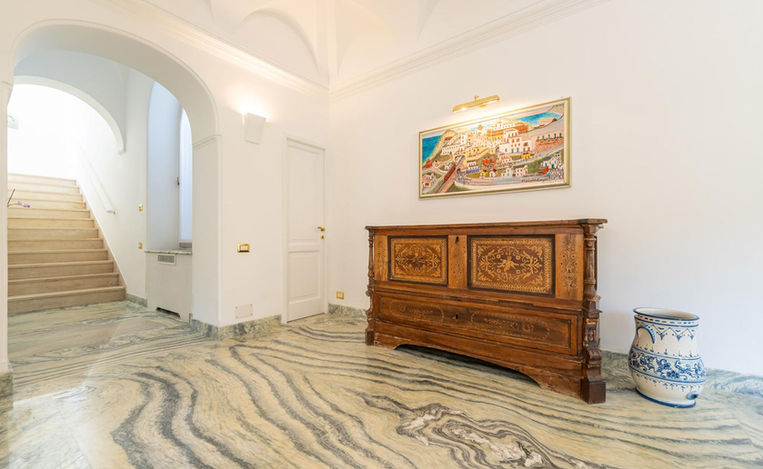 A short walk through fragrant flower gardens leads directly to the vibrant historic center of Capri. Villa La Conchiglia is the elegant retreat par excellence, featuring a decorative wrought-iron entrance that opens onto a spacious quartzite terrace and a lush Mediterranean garden. The exterior area boasts a beautiful private swimming pool, heated with a discreet solar bio-system. Through the frescoed portico, you access the interiors, where precious 18th-century Neapolitan antique furniture creates a unique atmosphere. The villa offers 5 main bedrooms, including a sumptuous Master Room with a Jacuzzi tub, and features a fully equipped basement floor exclusively reserved for service staff, ensuring maximum privacy and impeccable service.